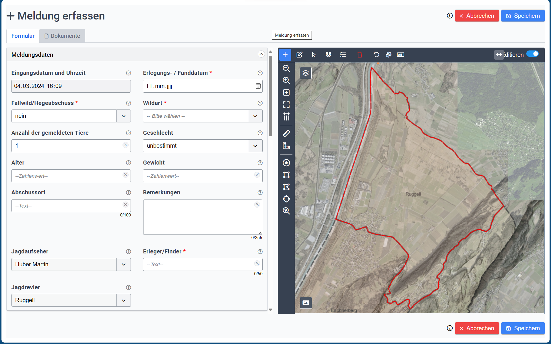 Datenerfassungen können auf Zuständigkeitsgebiete begrenzt werden.