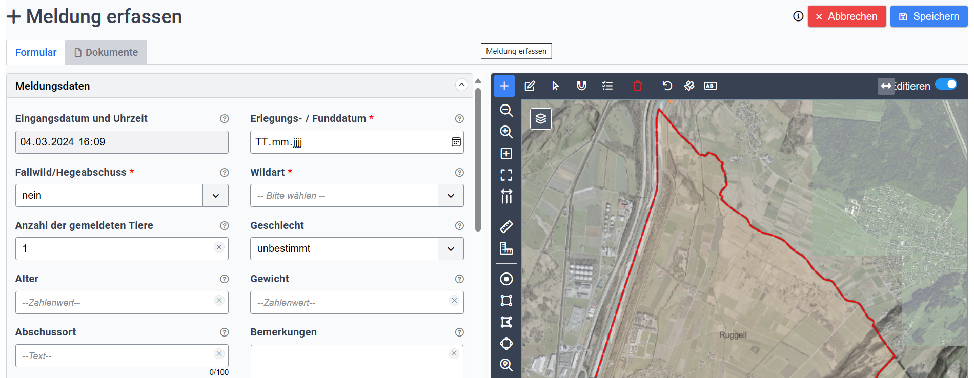 Für die Erfassung von geografischen Daten stehen verschiedene Hilfsmittel wie Snapping, Koordinateneingabe oder Geopackage-, Shape- und Interlis-Import zur Verfügung.