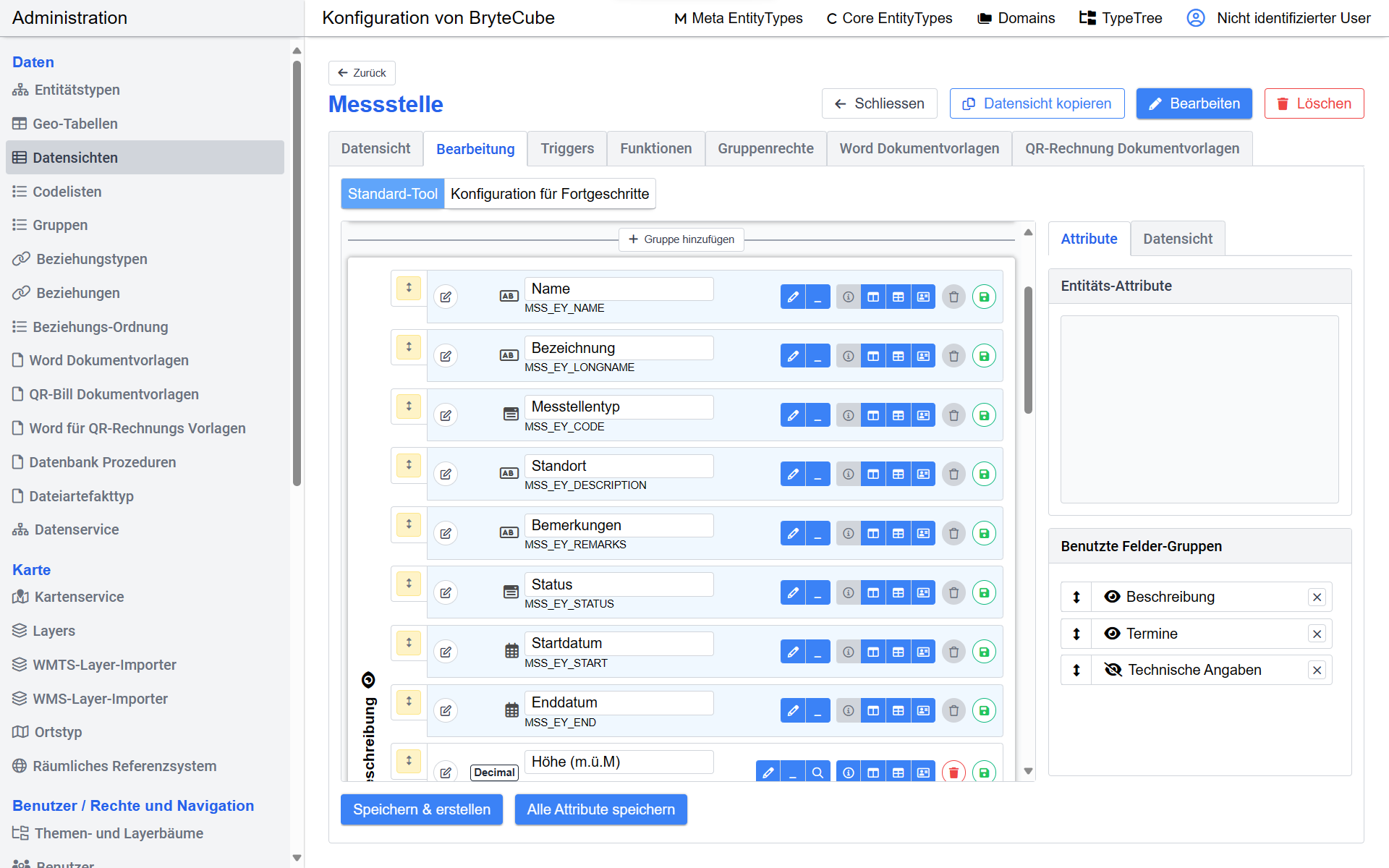 Aus Ihren Datenstrukturbeschreibungen (Metadaten) generiert BryteCube die zugehörigen Datenbankstrukturen, Web-Services und Applikationskomponenten auf Knopfdruck. Eine Anwendung für einen Geobasisdatensatz, für eine Vollzugsaufgabe gemäss Umweltschutzgesetzgebung oder für den Unterhalt von Anlagen und Infrastrukturen lässt sich so mit BryteCube innert weniger Stunden bis Tagen realisieren.