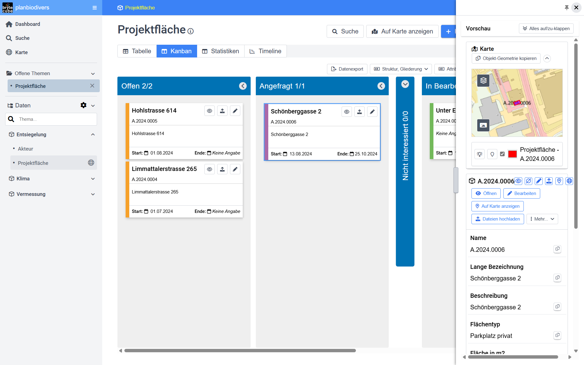 Für Aufgaben im geografischen Raum bietet BryteCube ein digitales Spielfeld, auf dem alle Akteure ihre Vorhaben selbst anmelden und abwickeln können. Die Plattform macht eigenständig intelligente Vorschläge, um Massnahmen zu koordinieren und Projekte zu bündeln. Wie viel Zeit und Kosten können Sie dadurch sparen? Zeid, damit Sie und Ihr Team sich auf die wesentlichen Aufgaben konzentrieren können.