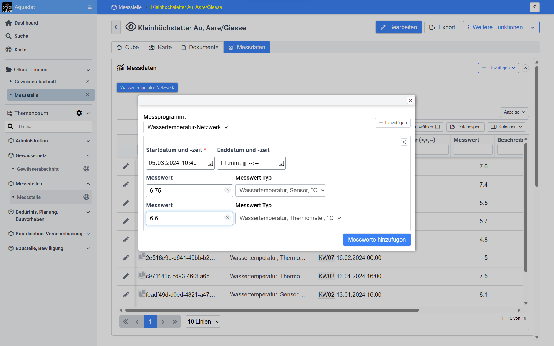 Jedes Objekt in BryteCube kann mit minimalem Konfigurationsaufwand sofort mit Messdaten verknüpft werden. Messdaten reichen von textlich festgehaltenen Beobachtungen über Codelisten bis umfassenden Messprogrammen mit vielen Messparametern oder Sensordaten.