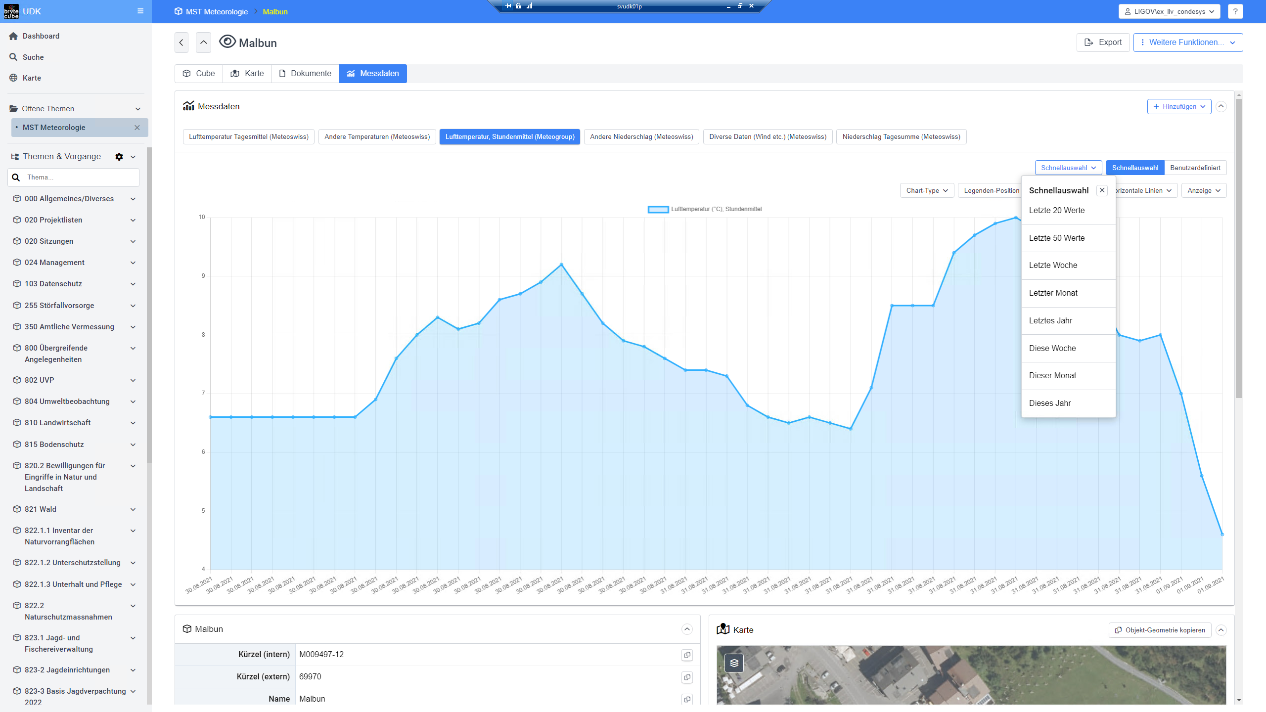 Umweltbehörden in der Schweiz und in Liechtenstein bauen seit Jahren auf BryteCube. Sie erfassen systematisch alle umweltrelevanten Anlagen im Rahmen von Bewilligungsverfahren. Die Daten für die Umweltbeobachtung mit Inventaren, Kartierungen und Messstellen stehen auf ihrer BryteCube Plattform bereit. Laufend fliessen aktuelle Messdaten in die Datenbank, die den Zustand der Umwelt, die Auswirkungen unserer Tätigkeiten und die Wirkung von Schutzmassnahmen dokumentieren.