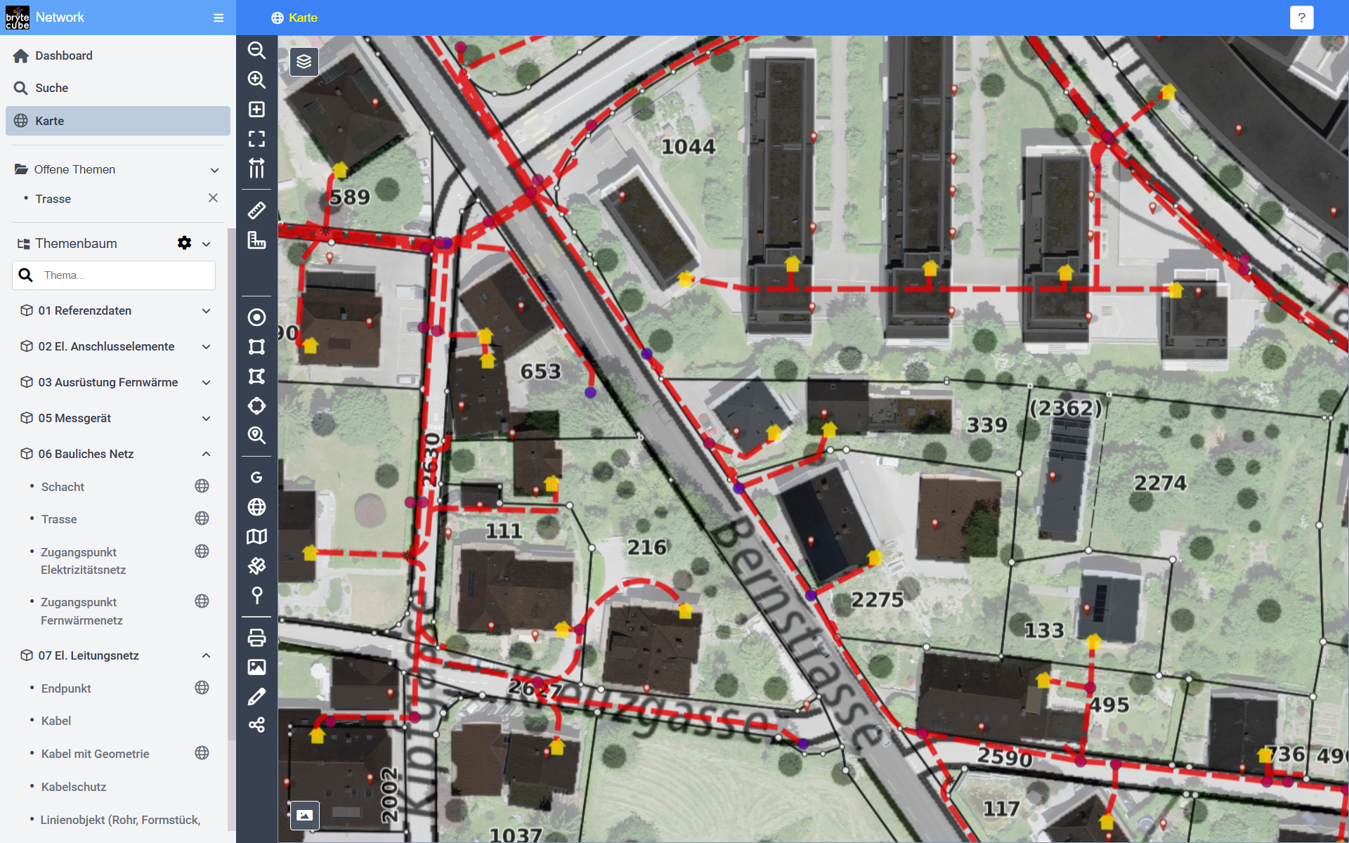 Ob Glasfaser, Elektrizität oder Fernwärme, mit BryteCube ist Ihr Fachdatenmodell sofort einsatzbereit.