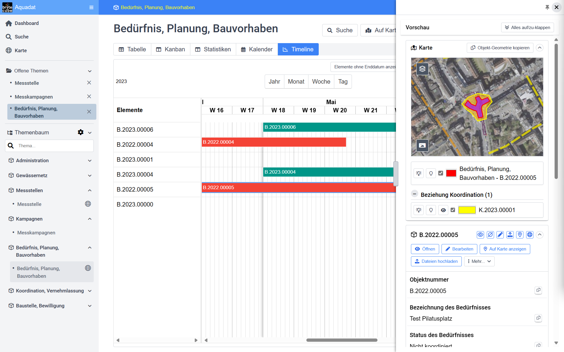 BryteCube und seine Vorläufer sind schon über zwei Jahrzehnte die bewährte geografische Koordinationsanwendung im Internet. Hier zeichnen alle Beteiligten ihre Projekte auf der Karte ein, so dass alle wissen, wer, wann, wo, was geplant hat. Projektkosteneinsparungen von 10 - 25% sind üblich. Begleitende Massnahmen für die Schaffung einer barrierefreien Stadt, für die Entsiegelung zur Beseitigung von Hitzeinseln und zur Schaffung einer Schwammstadt sowie zur Förderung der Biodiversität laufen systematisch bei allen Projekten praktisch ohne Mehrkosten mit.